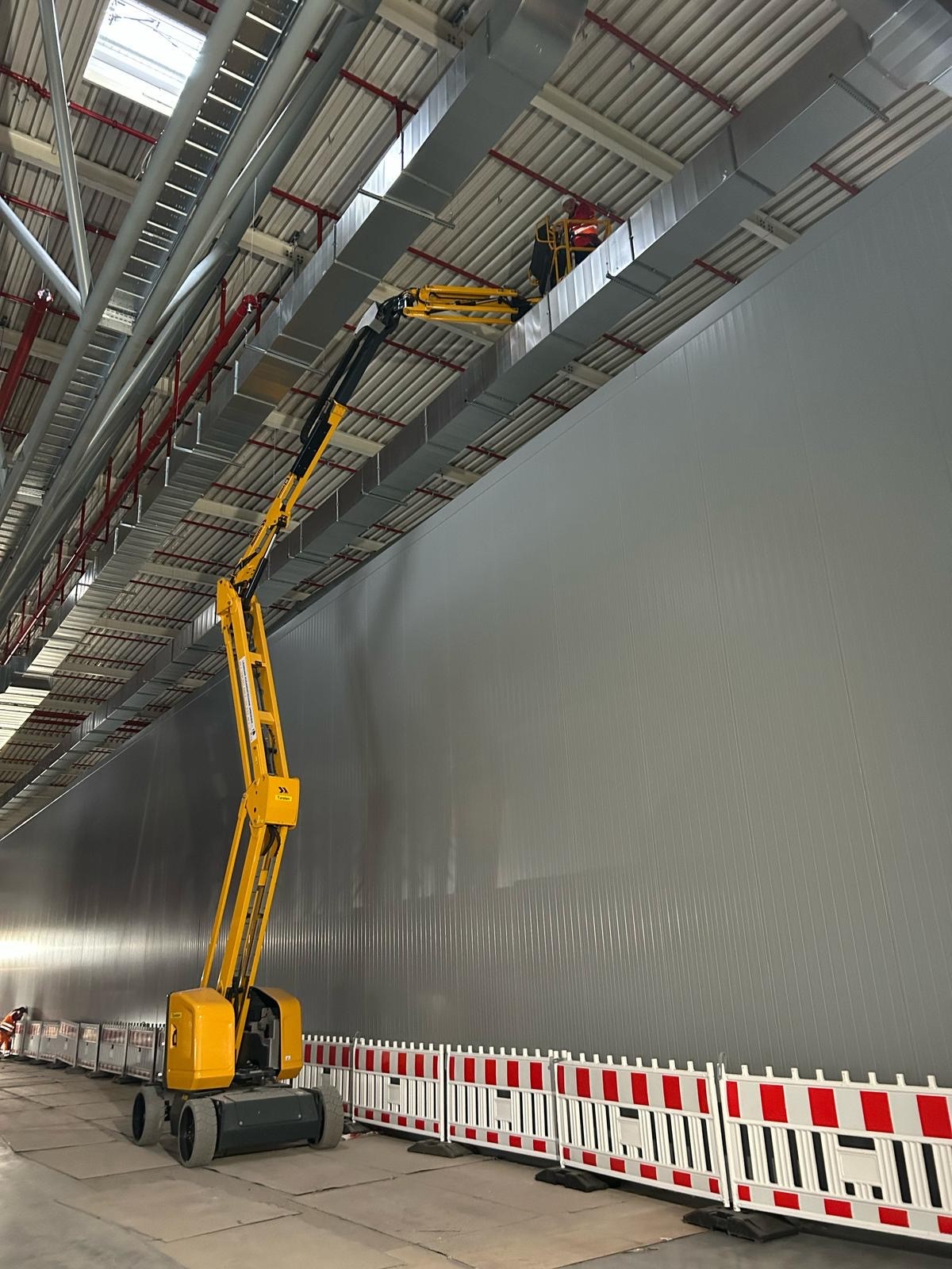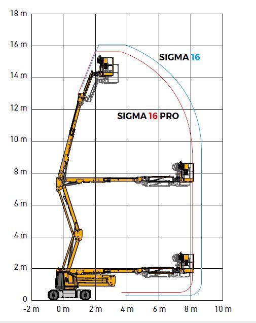 Arbeitshöhe 15,70 m Plattformhöhe 13,70 m Plattformgröße 1,20 x 0,8 x 1,10 m Bühnentragkraft 230 kg Drehbereich 355° Korb schwenkbar 2 x 85° Seitliche Reichweite 8,30 m Durchfahrthöhe 2,00 m Fahrzeugbreite 1,75 m Fahrzeuglänge 6,65 m Eigengewicht 7950 kg Antrieb elektrisch / Batterie Sonstiges max. Steigfähigkeit 25 %, Korbarm horizontal um 110 ° schwenkbar, Knickpunkthöhe 7,40 m Führerscheinklasse kein Führerschein erforderlich -