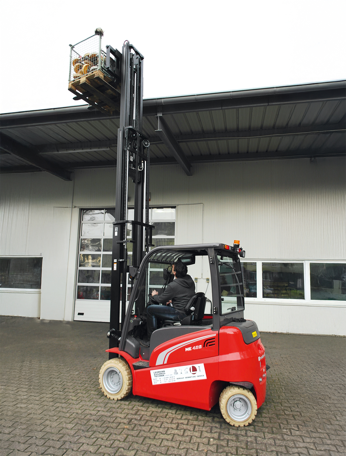 Antrieb Diesel/elektrisch, 230 VAC/16 A Führerscheinklasse kein Führerschein erforderlich Eigenschaft Wert Max. Hubhöhe je Typ bis 5,50 m Max. Tragkraft 2500 kg bis 3500 kg Max. Durchfahrtshöhe 2,20 m bis 3,30 m Max. Durchfahrtsbreite 1,16 m bis 1,32 m Länge mit Gabeln 3,40 m bis 4,20 m Eigengewicht 4000 kg bis 6000 kg Antrieb Elektro oder Diesel Sonstiges Elektro-Stapler mit nicht markierender heller Bereifung, Option: Gabelverlängerungen, inkl. Ladegerät