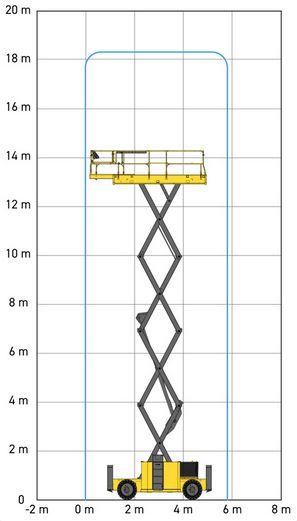 Arbeitshöhe 18 m Plattformhöhe 15 m Plattformgröße 1,89 x 3,93 m (6,00 m inkl. Ausschub) Bühnentragkraft 750 kg Seitliche Reichweite 0,98 m (Ausschub) Durchfahrthöhe 3,15 m / Geländer klappbar Fahrzeugbreite 2,30 m Fahrzeuglänge 4,4 m Eigengewicht 8048 kg Antrieb elektrisch / Batterie Sonstiges äußerer Wenderadius 6.75 m, Bodenfreiheit 30,7 cm, Steigfähigkeit 40% Führerscheinklasse kein Führerschein erforderlich -
