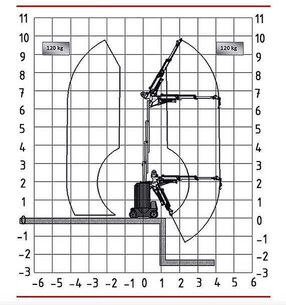 Antrieb elektrisch / Batterie Führerscheinklasse kein Führerschein erforderlich Technische Daten MH 35120 Max. Hakenhöhe 9,50 m Max. Personenlast 120 kg Max. Reichweite 4,10 m Bereifung nichtmarkierende helle Bereifung Drehbereich 355° Abstützbreite ohne Stützen Transporthöhe 2,38 m Transportbreite 0,98 m Transportlänge 2,44 m Eigengewicht 4800 kg Antrieb Elektro Batterie Sonstiges Selbstfahrer, dreht in Fahrbreite - kein Überhang -