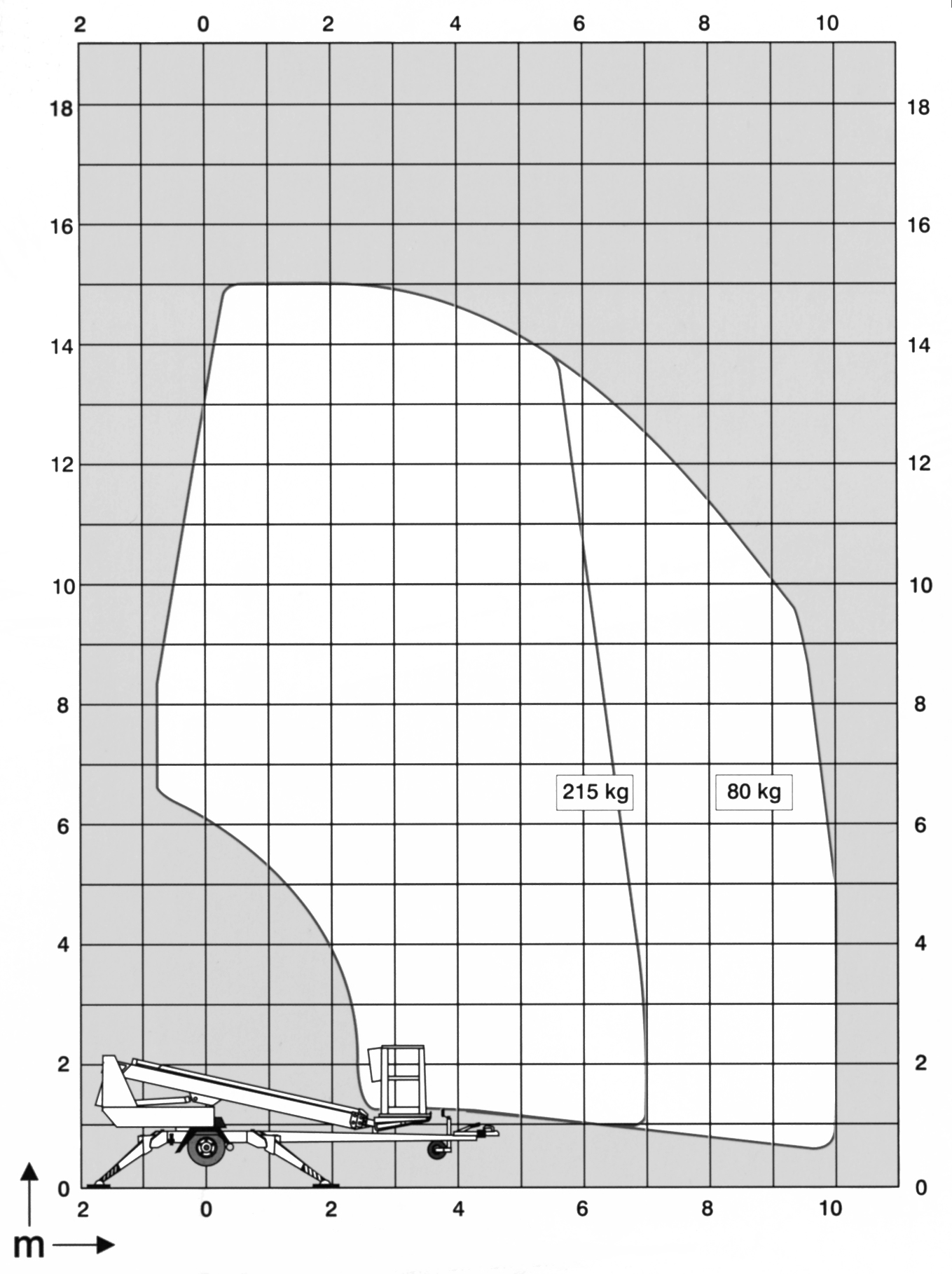 Arbeitshöhe 15.00 m Plattformhöhe 13.00 m Plattformgröße 0,70 x 1,30 x 1,10 m Bühnentragkraft 215 kg Drehbereich endlos Seitliche Reichweite 10,00 m Abstützbreite 3,80 x 3,80 m Durchfahrthöhe 2,14 m Fahrzeugbreite 1,78 m Fahrzeuglänge 6,35 m Eigengewicht 1650 kg Antrieb Diesel/elektrisch, 230 VAC/16 A Sonstiges Doppelsteckdose im Arbeitskorb; Rangierantrieb mit Steigfähigkeit 25 % Führerscheinklasse kein Führerschein erforderlich -