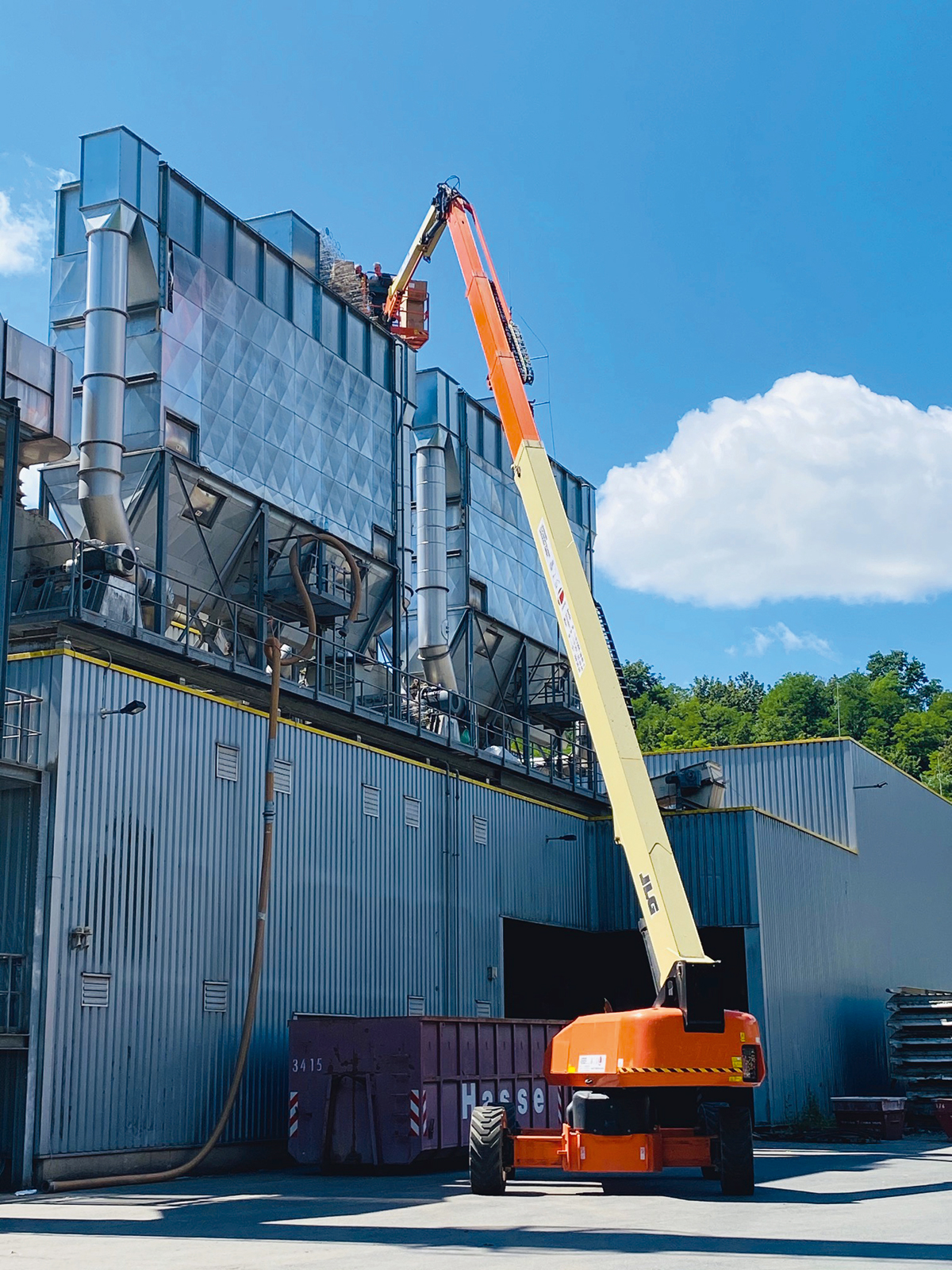 Extrem leistungsstarke Teleskopbühne für höchste Arbeitseinsätze mit maximaler Reichweite im Gelände