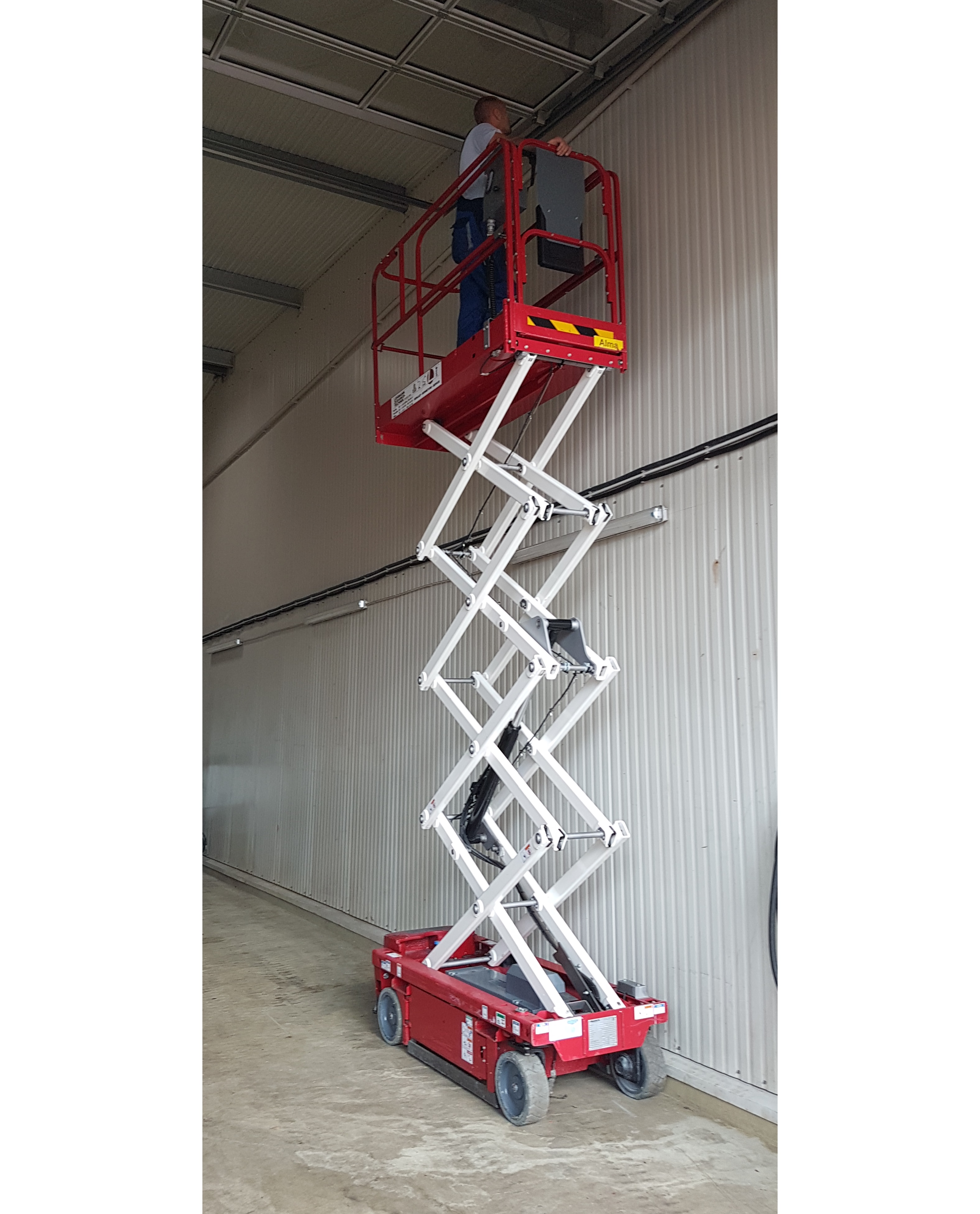Arbeitshöhe 7.80 m Plattformhöhe 5.80 m Plattformgröße 0,74 x1,72 m (2,59 m inkl. Ausschub) Bühnentragkraft 230 kg Seitliche Reichweite 0,86 m / Ausschub Durchfahrthöhe im eingefahrenen Zustand 1,98 m Fahrzeugbreite 0,79 m Fahrzeuglänge 1,90 m Eigengewicht 1590 kg Antrieb elektrisch / Batterie Sonstiges Elektrische und manuelles Bremsen-Freigabesystem, Bodenfreiheit 2 cm Führerscheinklasse kein Führerschein erforderlich -