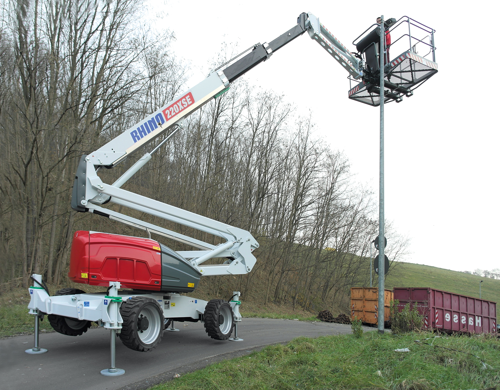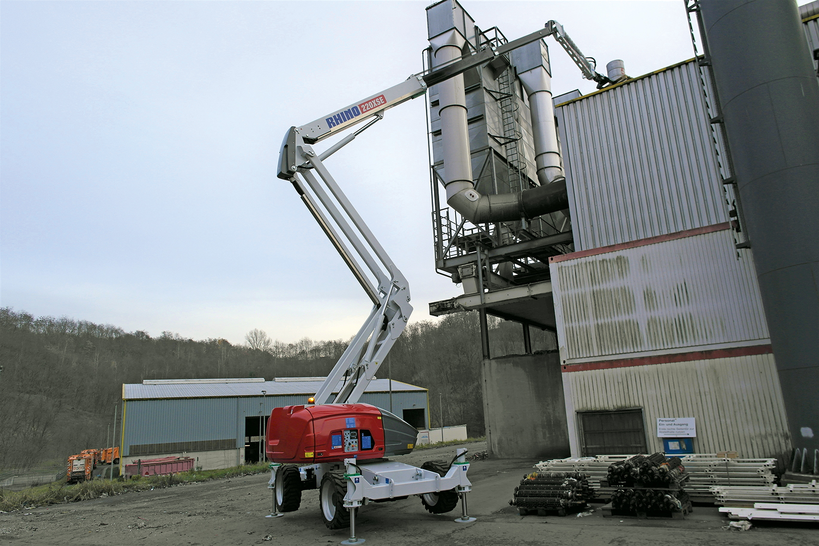 Leistungsstarke Allrad Bühne mit Stützten für schwieriges Gelände und enge Zugänge