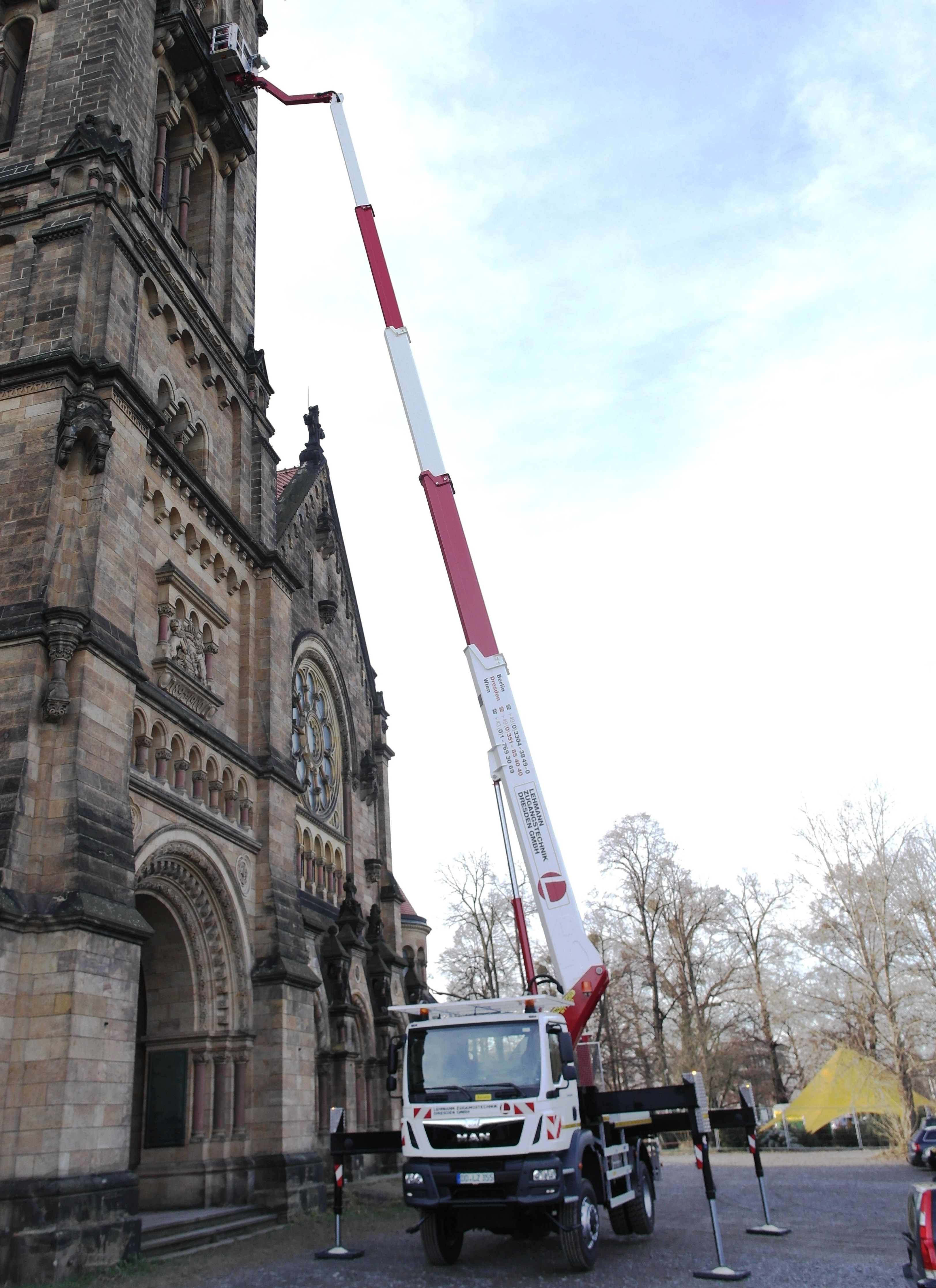 Arbeitshöhe 35.00 Plattformhöhe 33.00 Plattformgröße 1,80 x 0,90 x 1,10 m Bühnentragkraft 350 kg Drehbereich 540° Korb schwenkbar 2 x 80° Seitliche Reichweite 29,40 m bei 100 kg Korblast 25 m bei 350 kg Korblast Abstützbreite min. 2,55 m / max. 6,00 m Durchfahrthöhe 3,90 m Fahrzeugbreite 2,55 m Fahrzeuglänge 9,30 m Eigengewicht 15000 kg Antrieb 4x4-Allrad Sonstiges Baumschneidekorb u. Polyesterkorb mit 1000 Volt Isolierung möglich, voll variable Abstützung Führerscheinklasse Klasse C -