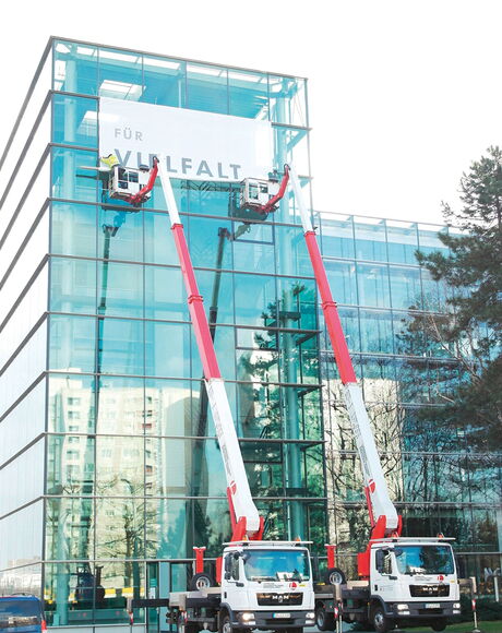 Direkt vor Ort einsetzbar – mit Arbeitshöhen bis über 45 m und Allradantrieb für jedes Gelände.